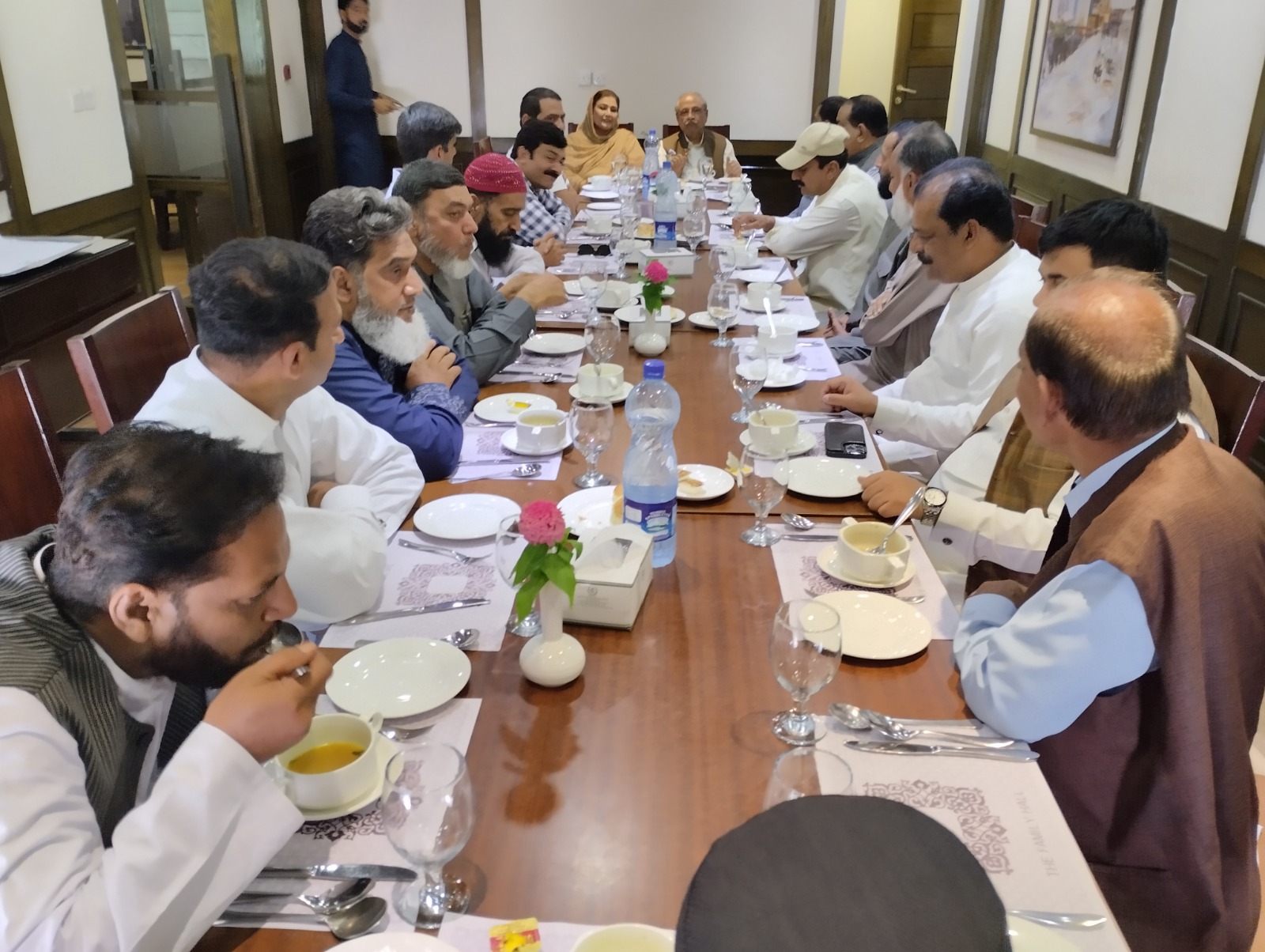 سابق ڈپٹی اسپیکر قومی اسمبلی ، بیگم عشرت اشرف سابق مشیر وزیر اعظم پاکستان ، ممبر قومی اسمبلی و ممبر پنجاب اسمبلی، محترمہ زیب جعفر سابق وفاقی پارلیمانی سیکرٹری برائے تعلیم و ممبر قومی اسمبلی اور سٹی صدر پاکستان مسلم لیگ ن رحیم یار خان چوہدری محمد عمر جعفر سابق ایم پی اے کی طرف سے اسلام آباد میں رحیم یار خان سے آئے ہوئے سنیئر صحافیوں کے اعزاز میں ظہرانہ دیا۔ وفد میں عاصم صدیق صدر پریس کلب رحیم یار خان، محمد ثاقب جنرل سیکرٹری پریس کلب رحیم یار خان، راؤ نعمان اسلام، نعیم بشیر ، سلیم چشتی، سجاد اسلام، چوہدری افتخار حسین، وسیم عامر، قیصر غفور، حیدر منگریو، رانا عثمان، جی ایم حیدر، اصغر گیلانی، فلک شیر سندھو، انور سہیل، محمد ارشد، شہباز علی، محمد شان، اعجاز نذیر، فاروق گجر، محمد حفیظ، ارسلان مہندرا، جاوید اقبال، حسین احمد، صدیق بلوچ، نذر چاچڑ، محمد شبیر، ایس ایچ جہانگیر، رانا اعزاز، فیضان نذیر گھلو، غلام مصطفیٰ شامل تھے۔ اس موقع پر کرنل میاں محمد اکرم ایڈووکیٹ ، سردار احمد اور رفیق شاہد بھی موجود تھے۔ سنیٹر چوہدری محمد جعفر اقبال نے مہمان صحافیوں سے گفتگو کرتے ہوئے کہا کہ الحمدللہ جعفر آباد خاندان نے ہمیشہ شرافت، دیانت، خدمت اور اصولوں کی سیاست کی ہے اور یہ سلسلہ جاری و ساری رہے گا۔موجودہ ملکی و سیاسی صورتحال پر بات کرتے ہوئے کہا کہ اس وقت ملک جس بحرانی صورتحال کا شکار ہے اس سے نکالنے کے لیے ہمیں ایک قوم بننا ہو گا۔ملک سے کرپشن اور اقرباء پروری کے خاتمے کے لیے آزادانہ اور شفاف احتساب ضروری ہے مگر افسوس سے کہنا پڑتا ہے کہ اس ملک میں احتساب کرنے والے خود قابل احتساب تھے۔ ماضی میں پی ٹی آئی کی حکومت نے جس بغض کو احتساب کا نام دیا اس سے ملک کو ناقابل تلافی نقصان پہنچا۔ وقت کا تقاضا ہے کہ ہم سیاسی بلوغت کا مظاہرہ کرتے ہوئے ملک کے لیے ایسے فیصلے کریں جو ملکی مفاد میں ہوں۔ ہمارے لیے سب سے پہلے پاکستان ہے ۔ ماضی کی غلطیوں کو سامنے رکھ کر مستقبل کی پالیسیاں مرتب کرنے کی اشد ضرورت ہے۔ ہمیں پارلیمانی طرز حکومت کی ناکامیوں سے سبق سیکھتے ہوئے صدارتی طرز حکومت کی طرف غور و فکر کرنا چاہیے۔ چھوٹے صوبے بنیں، بلدیاتی نظام مستحکم ہو، اقتدار نچلی سطح پر منتقل کیا جائے تو بے شمار مسائل پر قابو پایا جا سکتا ہے۔رحیم یار خان کے حوالہ سے انھوں نے بات چیت کرتے ہوئے کہا کہ رحیم یار خان ایک ذرخیز علاقہ ہے زراعت کو فروغ دینے سے یہ علاقہ ملکی معیشت میں کلیدی کردار ادا کر سکتا ہے۔ مسلم لیگ ن نے اس سے قبل بھی رحیم یارخان کی ترقی و خوشحالی کے لیےسب سے بڑھ کر اقدامات کیے اور آنے والے وقتوں میں مسلم لیگ ن برسراقتدار آ کر اس علاقے کے لیے پہلے سے بھی بڑھ کر اقدامات کرے گی اور رحیم یار خان ترقی ، خوشحالی اور امن کا گہوارہ بنے گا انشا اللہ۔