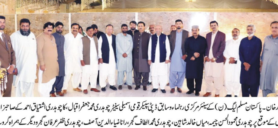 Rahim Yar Khan : Senior central leader of Pakistan Muslim League (N) and former Deputy Speaker National Assembly Senator Chaudhry Muhammad Jafraqbal participated in the marriage ceremony of the sons of Chaudhry Ishtiaq Ahmed, a prominent personality of the region and a political and social leader. A large number of local politicians, businessmen, political social leaders and dignitaries of the region participated in the wedding ceremony. Talking about the current situation in the country, Chaudhry Mohammad Jafar Iqbal said that Imran Khan will soon escape from politics. , the federal government is trying to save the country from economic and other problems.
